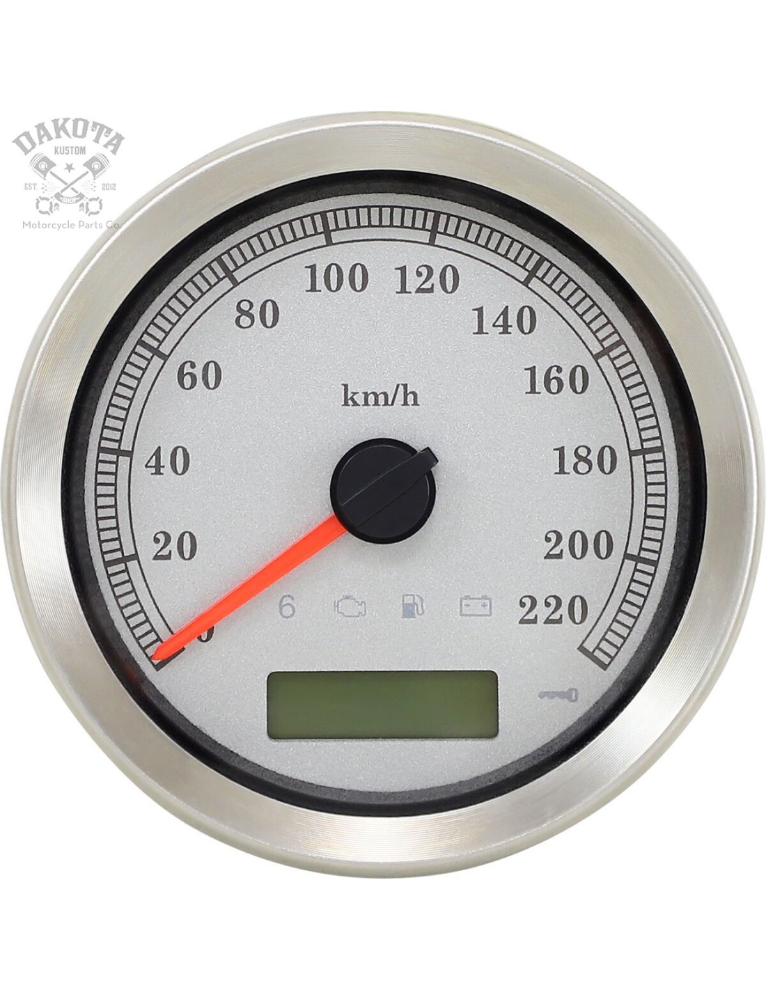 Cuenta kilómetros Drag Specialties de estilo original Harley-Davidson, marca en Km/H. Apto para todos los modelos Harley-Davidson FLT Touring 2004-2013, FX Dyna 2004-2010 y Sportster XL 2004-2013. Referencia original Harley-Davidson 67416-08.