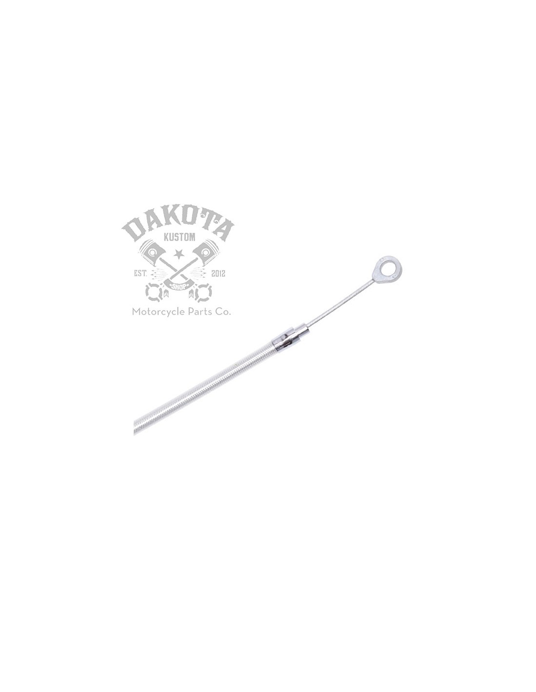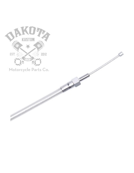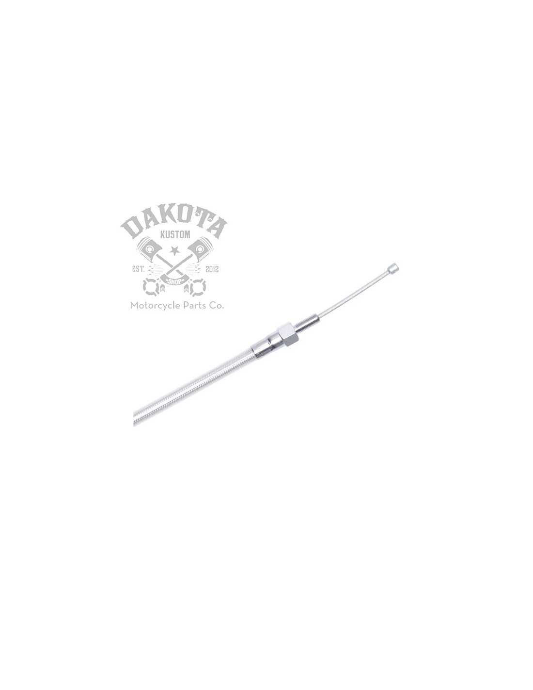 Cable embrague inoxidable con funda fabricada en vinilo transparente y terminales cromados. Longitud: 66" (168 cm) de largo. La medida es la longitud total entre los dos extremos de la funda. Apto para todos los modelos Harley-Davidson Big Twin 2006-2025 (excepto Touring 2008-2025 y modelos con embrague hidráulico).