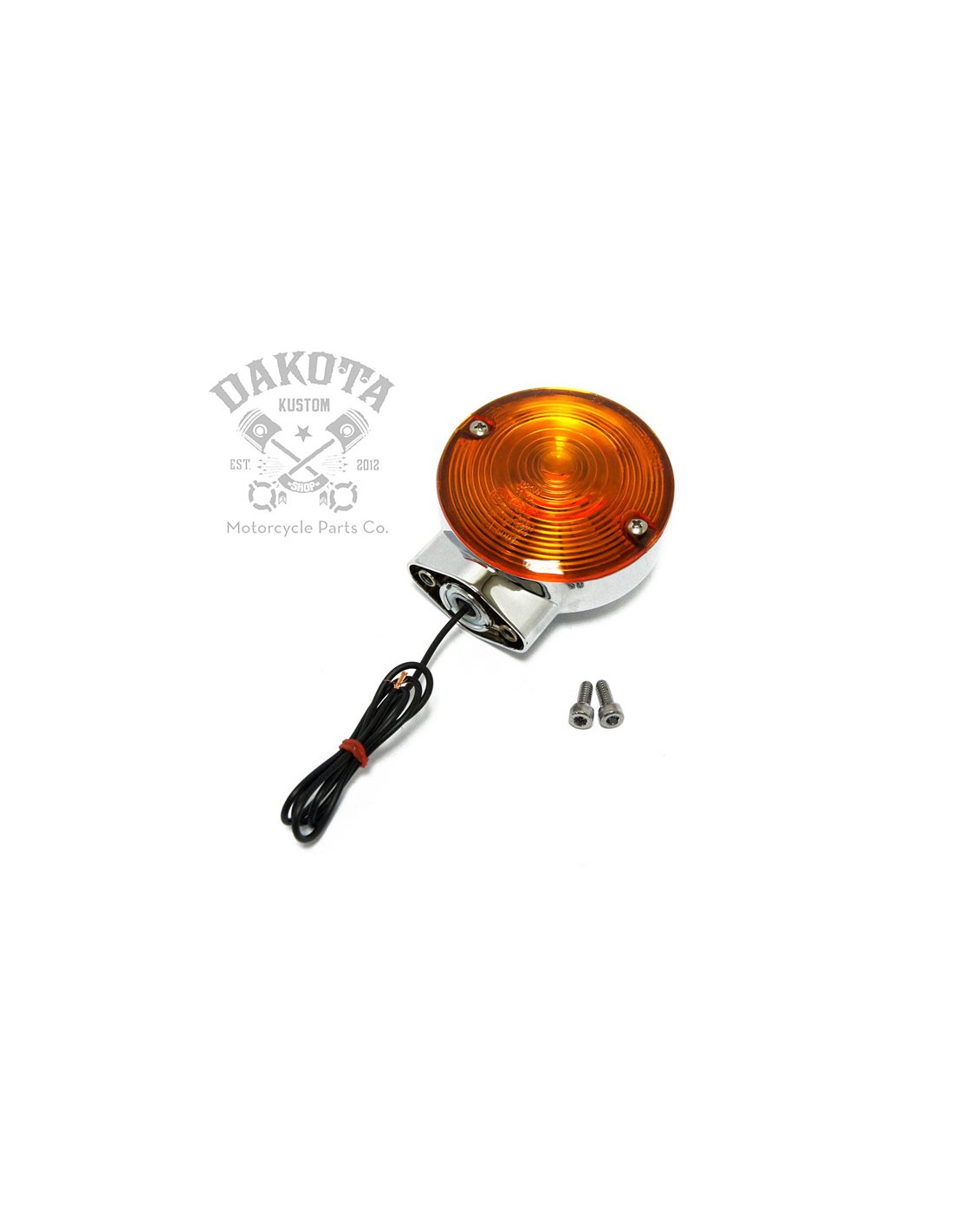 Intermitente delantero y trasero de estilo original con lente ámbar, carcasa cromada y bombilla de un solo filamento. Repuestos completo para modelos con intermitentes de serie de lente plana grande de 8,9 cm. Precableados, sin conectores. Los intermitentes delanteros y traseros son iguales, la diferencia radica en el cableado para bombillas de un solo filamento o de doble filamento. Apto para modelos Harley-Davidson FLT/Touring 1986-2014 FLHT, FLHS, FLST/C, FXRT y FXRD. Referencia Original 68402-86 y 68765-94A. Nota: Por lo general, los modelos Europeos no están cableados para la función de doble filamento.