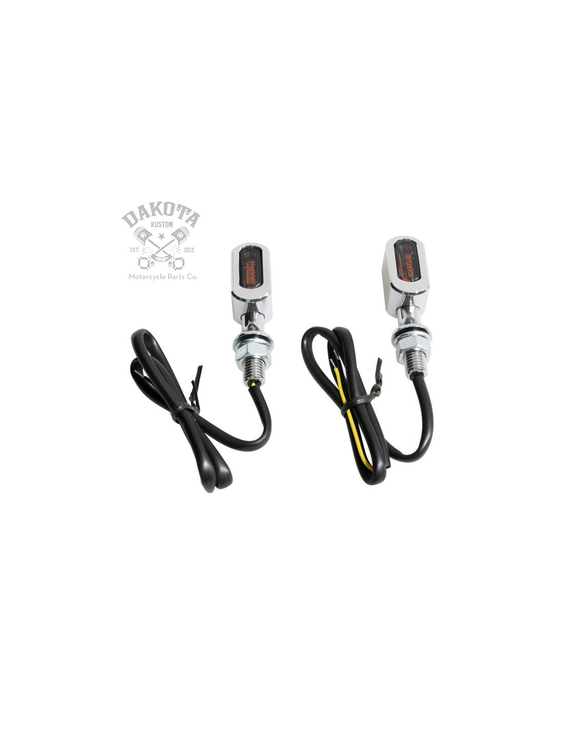 Juego de intermitentes Led Fastline cromados traseros 3 en 1 con luz de posición, freno e intermitentes, equipados con una lente aprobada por ECE con LED ahumada de alta intensidad de una sola función. La carcasa de aluminio billet mide 1" (25,4 mm) de ancho x 1/2" (12,7 mm) de alto. El tallo es de 14 mm de largo. La parte roscada del vástago tiene roscas de 8 mm y tiene una longitud de 18,3 mm.