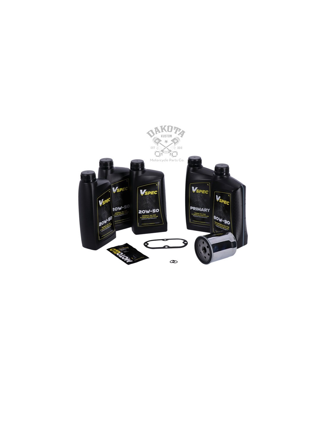Kit aceite mineral del fabricante VSPEC para realizar el cambio de aceite de motor. Incluye: 3 litros de aceite de motor mineral SAE 20W50, filtro de aceite cromado 63796-77A, 1 litro de aceite de caja primaria, 1 litro de aceite de transmisión 80W90, junta de tapa de inspección 60567-65B/60567-90C, junta tórica tapón de drenaje 11105. Aceite de motor mineral SAE 20W50 multigrado Vspec de calidad para motos que requieren aceite de motor mineral. Cumple o supera JASO MA/2. Apto para todos los modelos Harley-Davidson Softail 1984-1998