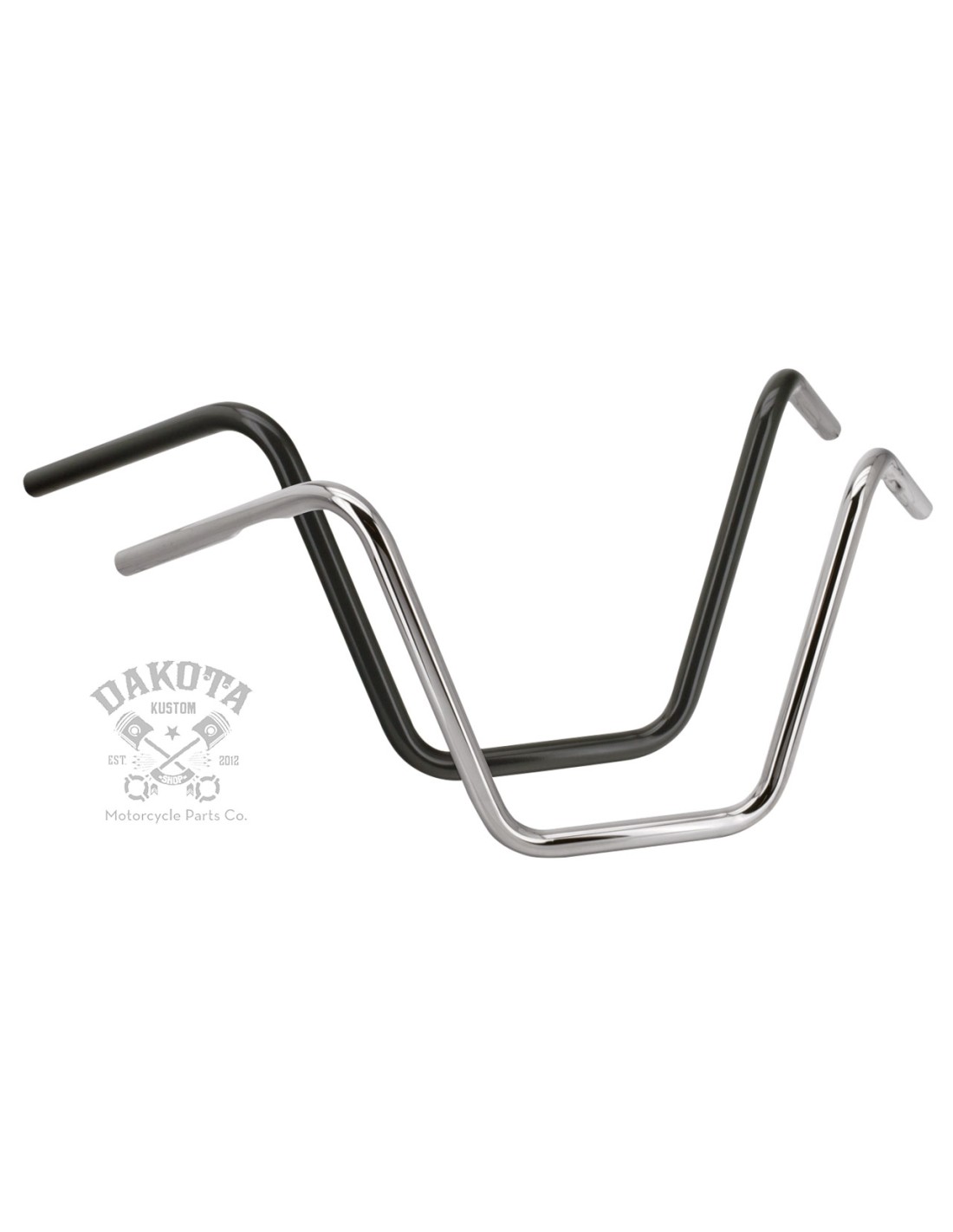 Manillar Apehanger negro de 1" de grueso. Con hendiduras para facilitar la salida del cableado. Medidas: 80 cm de ancho total, 34 cm de altura, 16 cm de anchura central y 23 cm de retroceso. Apto para la mayoría de modelos Harley-Davidson sin acelerador electrónico.