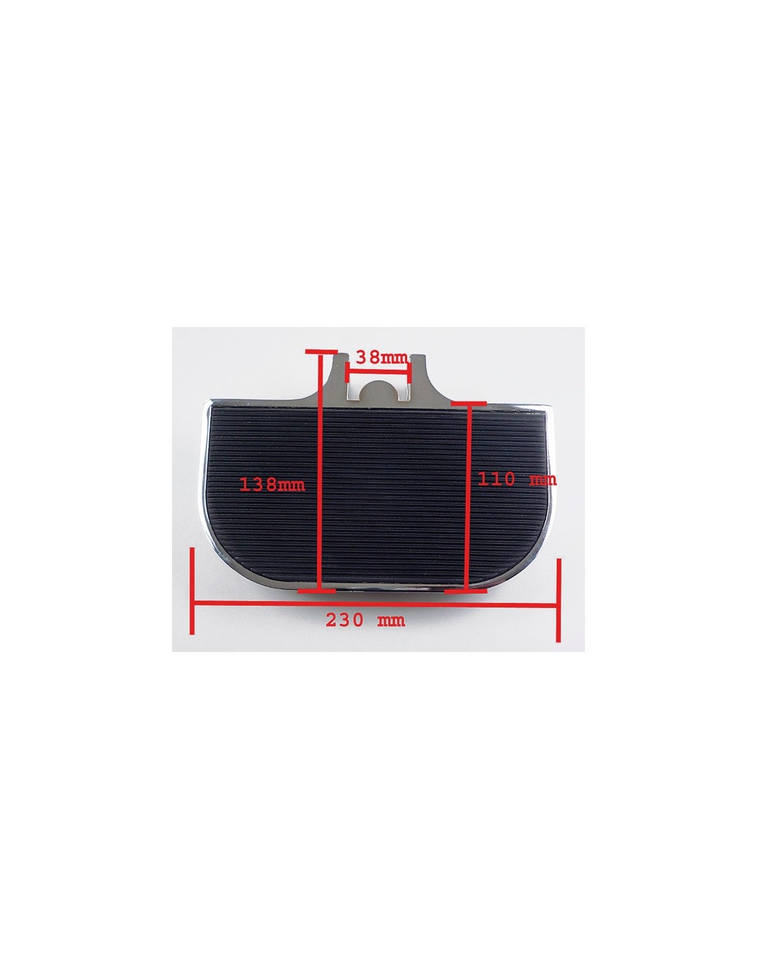 Plataformas universales de fácil instalación. Fabricadas en metal pintado en negro con superficie de goma negra. Validas para conductor y acompañante para la mayoría de modelos Harley-Davidson. 230MM de largo, 110MM de ancho y 138MM de ancho total contando con el soporte.